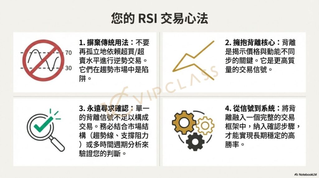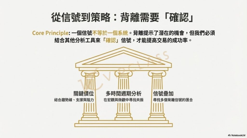 擁抱背離核心:關注價格與動能不同步的時刻。